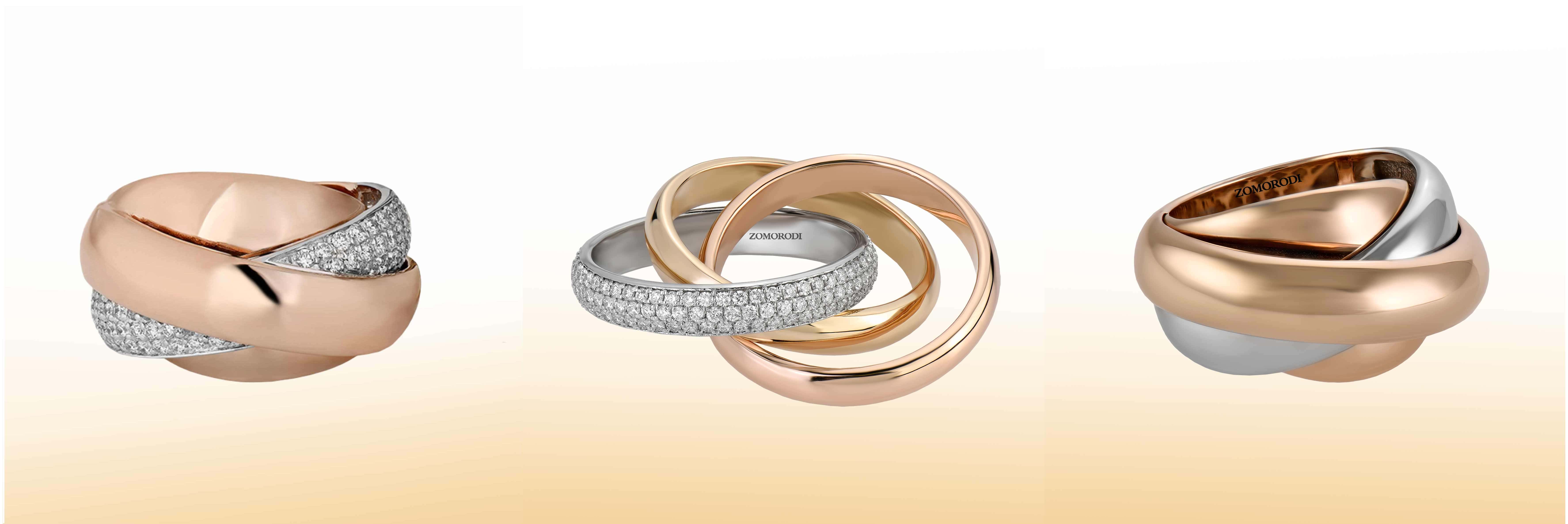 مجموعه ترینیتی در سال 1926 توسط لویی کارتیه (Louis Cartier) طراحی شد و به نمادی از مهمترین روابط زندگی تبدیل شده است. سه نوار در هم تنیده در رنگ های رز گلد، زرد و طلای سفید.
