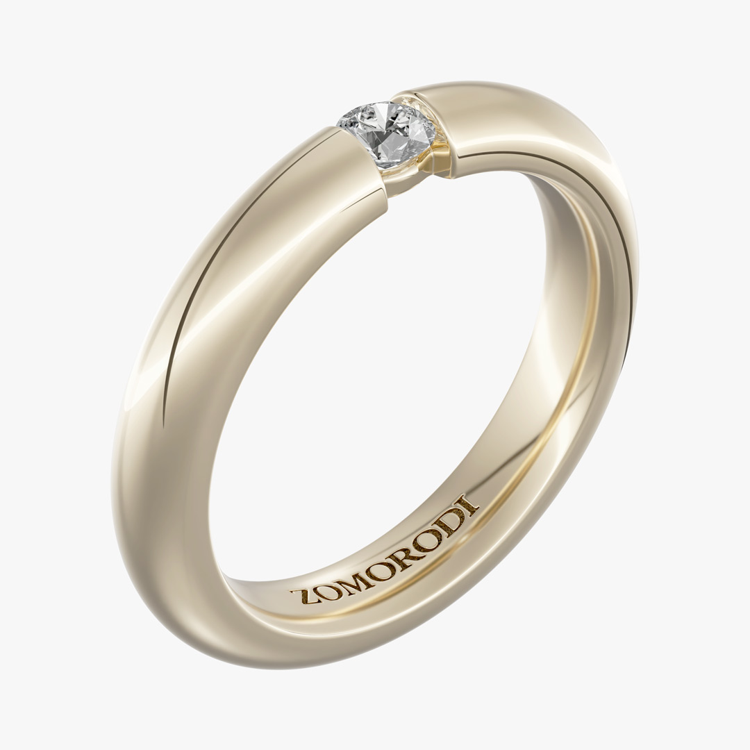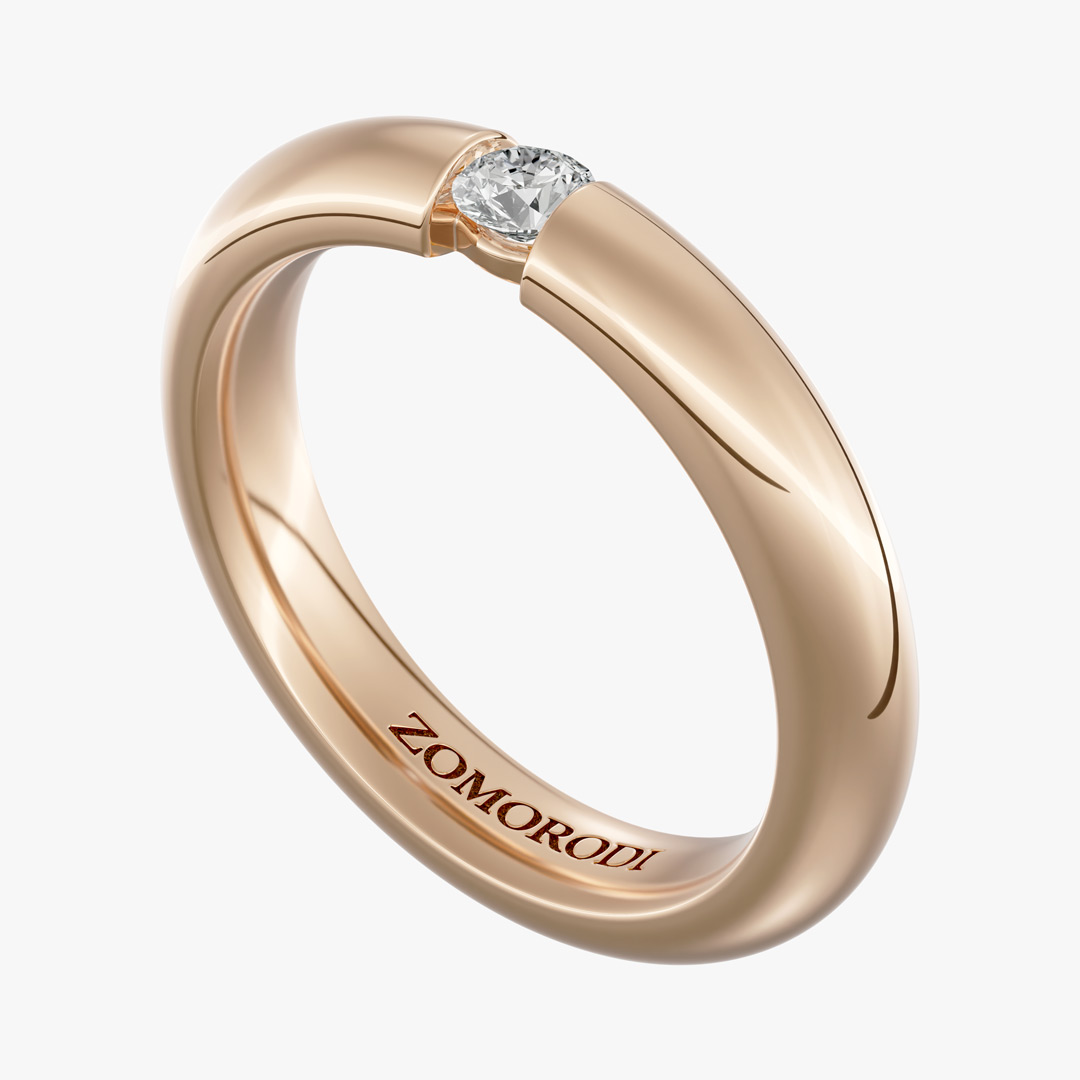 روی رکاب این حلقه ازدواج ظریف یک عدد برلیان 0.08 قیراطی قرار دارد.